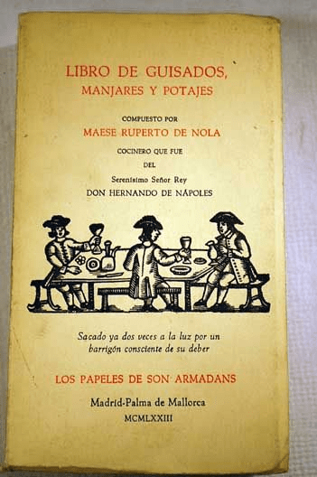 Comamos y bebamos ¿Y de merienda? Algo ligerito: perniles cocidos; capones o pavos asados calientes; empanadas inglesas, pichones y torreznos; pajaritos fritos sobre alfilete frío; cazuelas de pies de puerco con piñones; salpicones de vaca y tocino magro; costradas de limoncillos, huevos mejidos, truchas de escabeche y papín tostado con cañas; y las frutas conforme el tiempo que haga en la merienda.